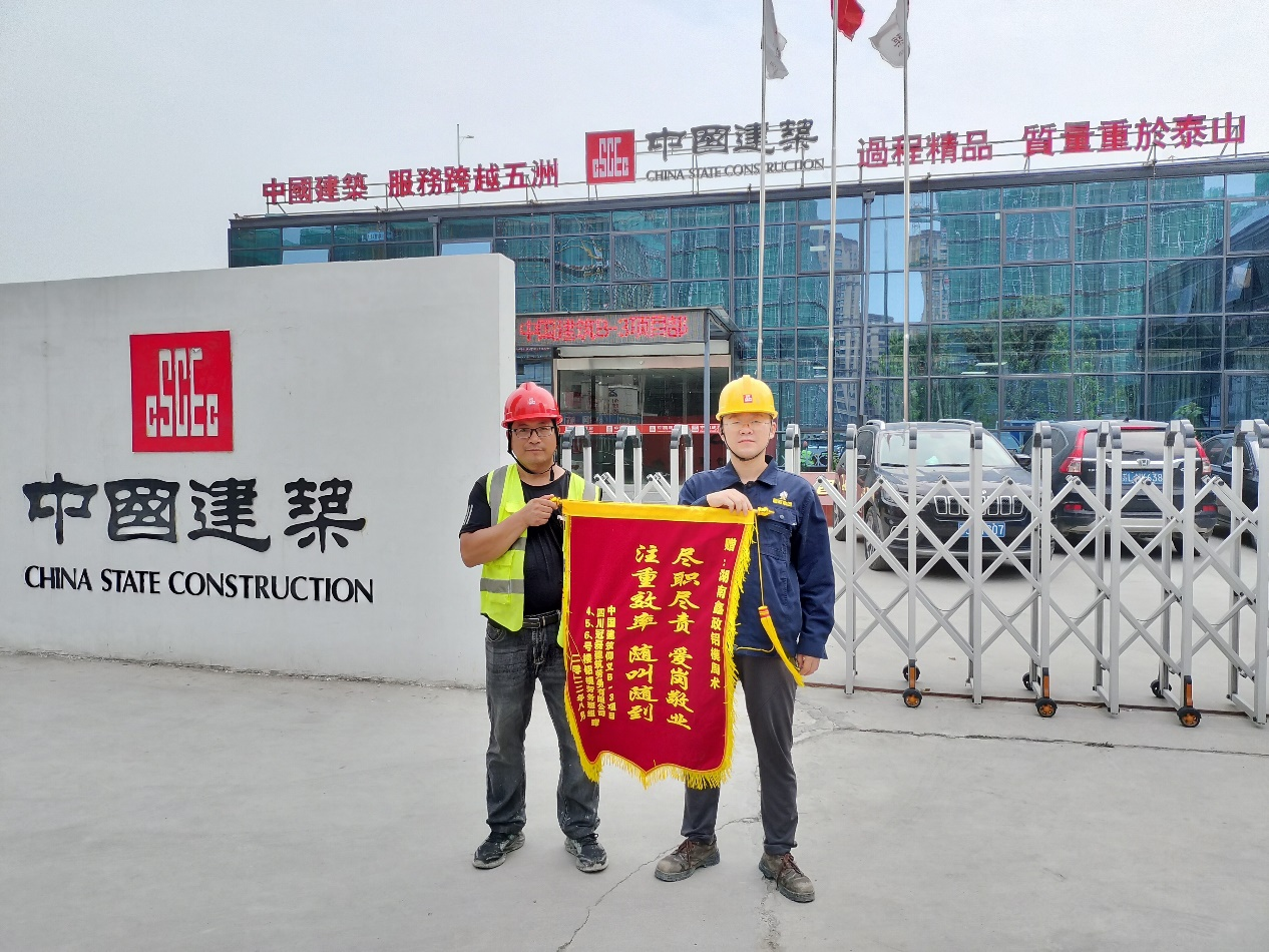 項目現(xiàn)場負(fù)責(zé)人為鑫政工程服務(wù)師周術(shù)(右一)送來錦旗溫州市鹿城區(qū)仰義街道B-3地塊項目,是鑫政集團(tuán)與戰(zhàn)略客戶四川冠鑄今年合作的第五個項目之一。仰義B-3項目六棟樓,均由鑫政鋁業(yè)提供全套體系模板和首三層安裝指導(dǎo)服務(wù)。目前,鑫政已配合項目4#樓建設(shè)完工,其他樓均已建設(shè)過半,項目整體進(jìn)程順利。