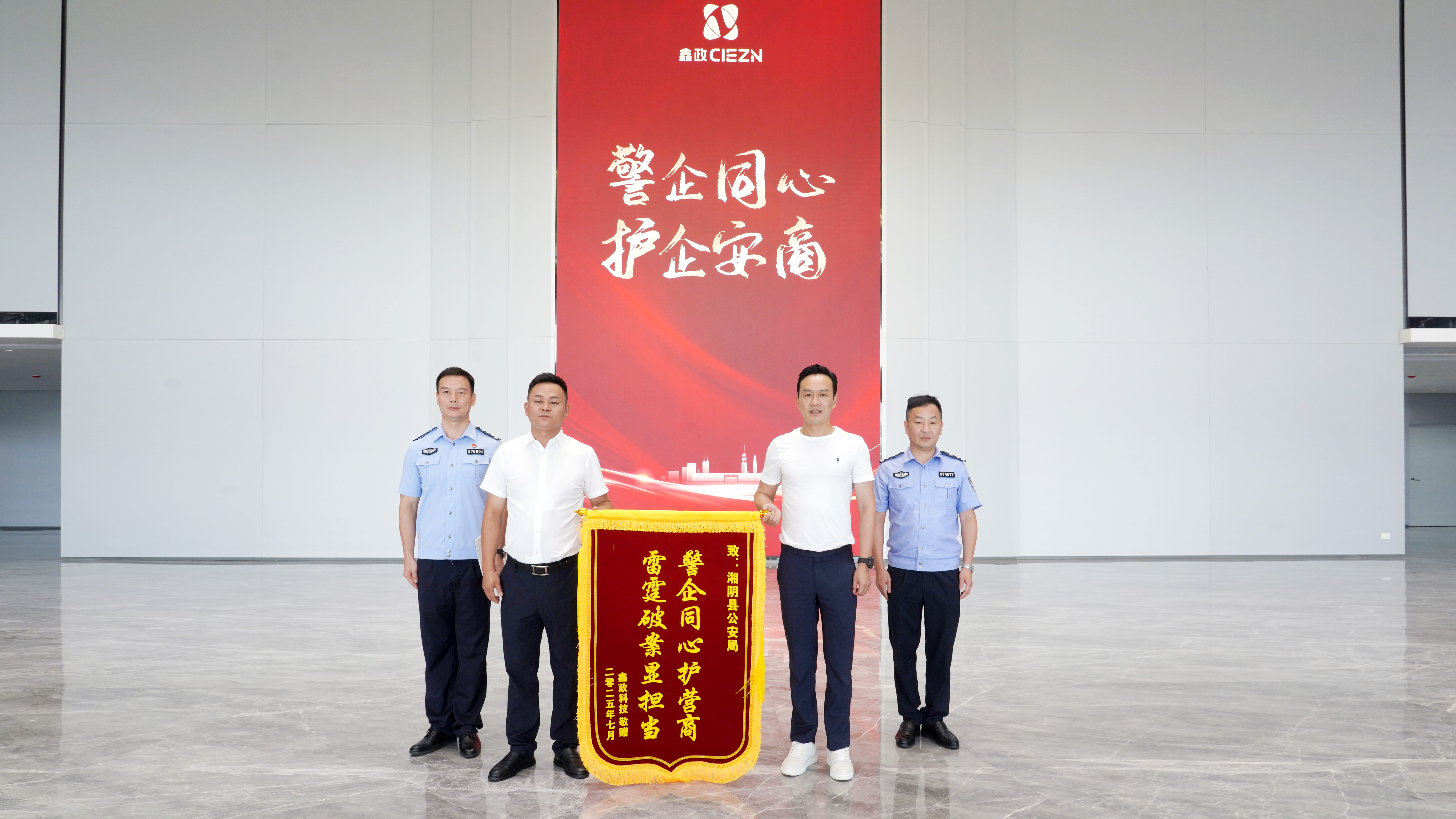 會后,鑫政向湘陰縣公安局贈送錦旗,感謝公安部門在服務企業發展、共筑一流營商環境中展現的高效務實作風和擔當作為精神。